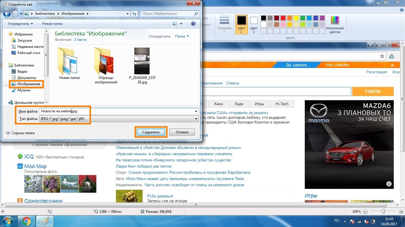 Появится окно для сохранения. Напишите имя файла и выберите место его для сохранения. Тип файла лучше использовать JPEG.