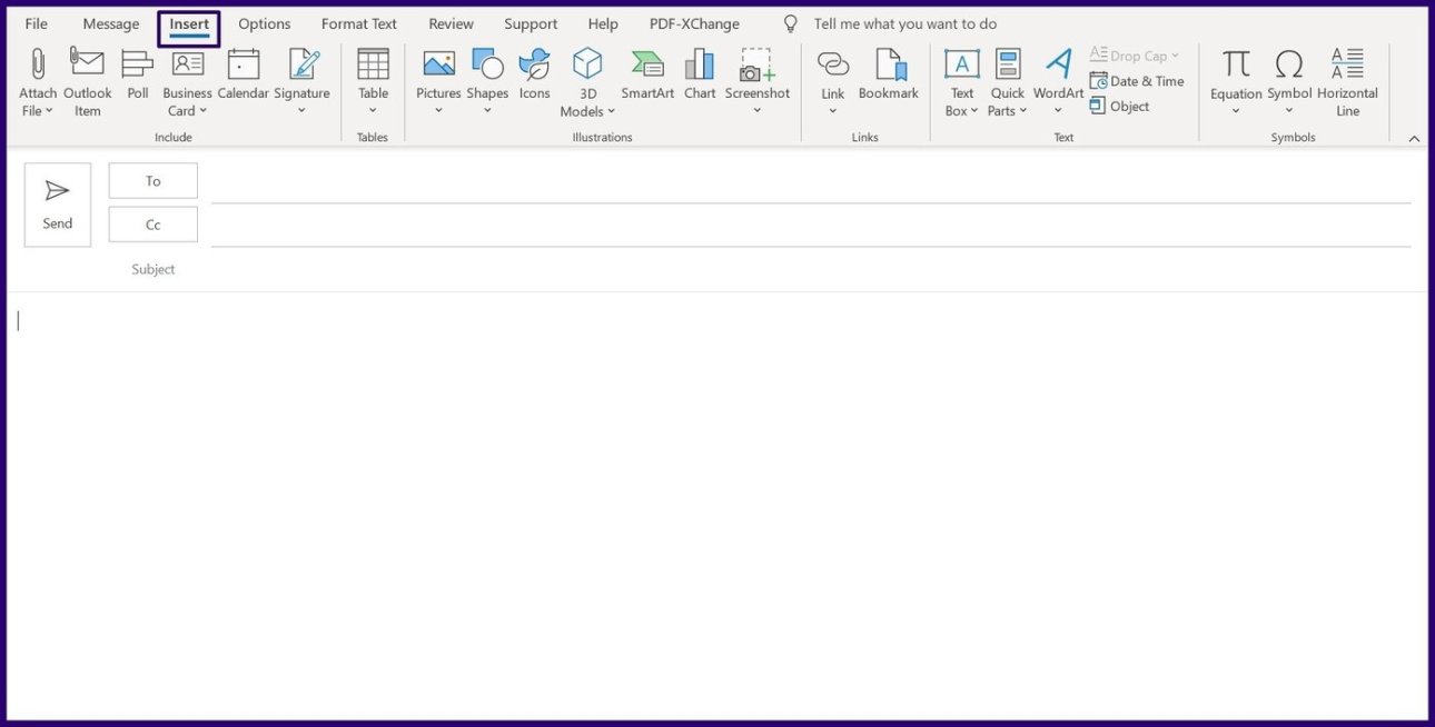 Примечание. Если вы пересылаете или отвечаете на существующее электронное письмо из области чтения, вам нужно нажать кнопку всплывающего окна в верхней части панели, чтобы получить доступ к параметру «Вставить».