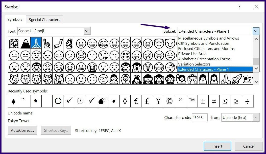 Шаг 7. Не каждый символ шрифта является смайликом, поэтому вам следует прокрутить список, чтобы найти их. Вы также можете использовать раскрывающийся список Подмножество, где вы найдете наиболее интересный набор смайликов. Они включают: