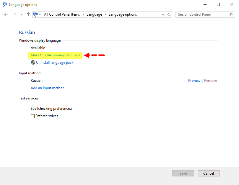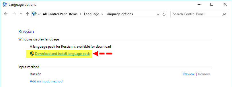 При использовании этого способа у вас в наличии должен быть необходимый языковой пакет, который можно взять на одном из сайтов Microsoft: