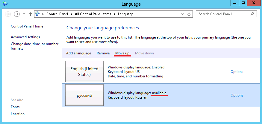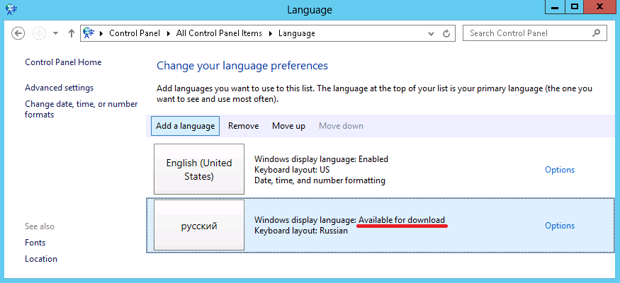 Установка языковых пакетов (language packs) на сервер не является обязательной процедурой. Но в некоторых случаях языковой пакет может потребоваться сервису или приложению для корректной работы. Поэтому я опишу пару способов установки Language pack на Windows Server 2012.