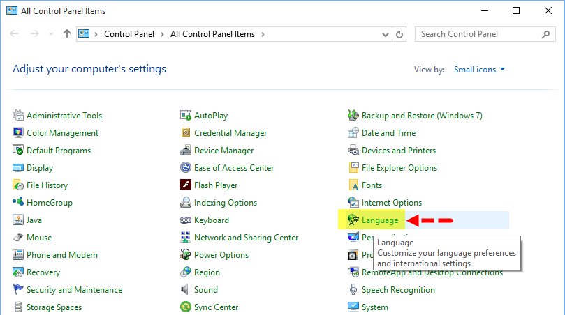 Убираем раскладку клавиатуры в Windows 10 через панель управления