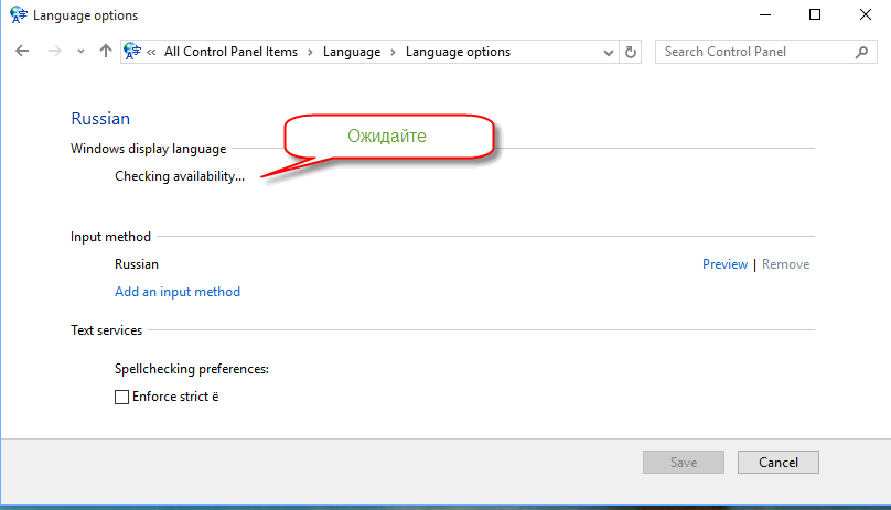 После этого откроется новое окно. В его верхней части вы сможете увидеть область Windows display language. Подождите, пока система проверит наличие языкового пакета.