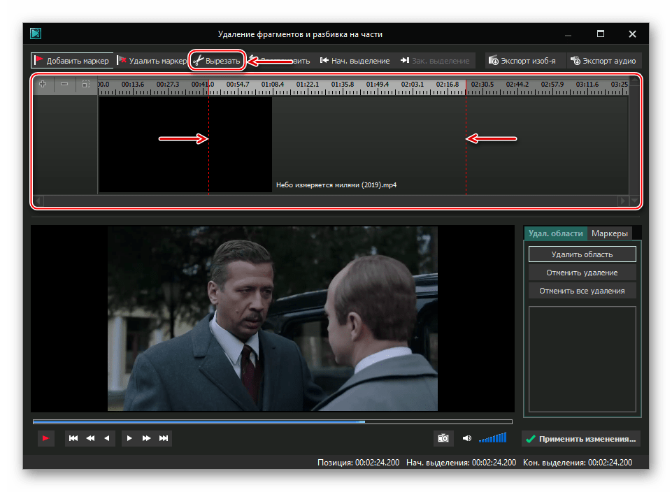 Платформа позволит удалить часть в середине или начале и конце видеоматериала