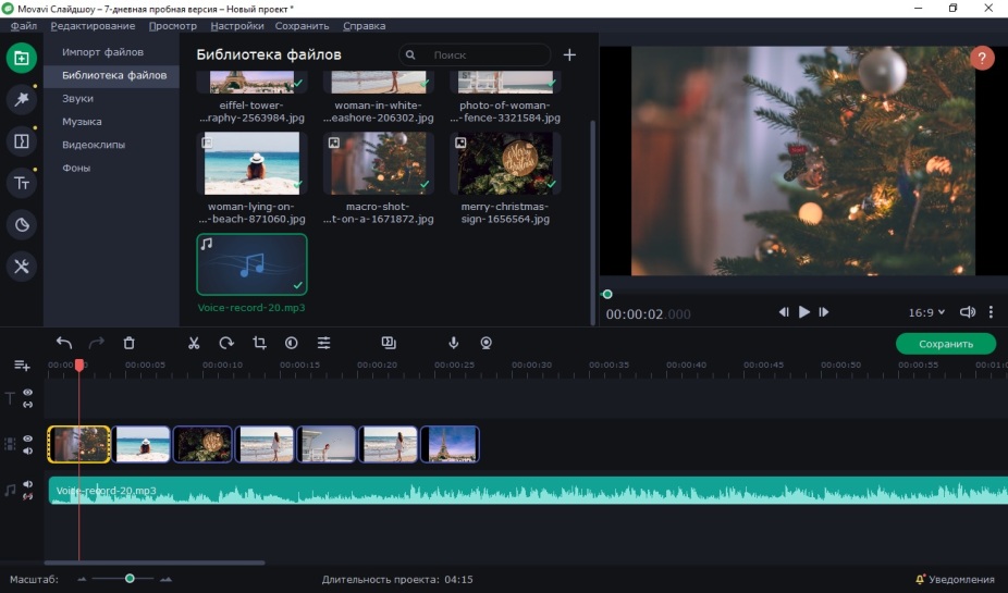 Movavi Slideshow Maker — удобный инструмент, который поможет превратить ваши домашние фотоальбомы в яркие фильмы. Благодаря интуитивно понятному интерфейсу его может освоить даже новичок, ни разу не имевший дело с монтажом. Создайте слайд-шоу за три простых шага: загрузите свои фото, автоматически объедините их с анимированными переходами и наложите музыку. Также можно использовать встроенный редактор: разрезать слайд-шоу на несколько частей, удалить ненужные сегменты, повысить качество изображения, добавить стильные заголовки и фильтры.