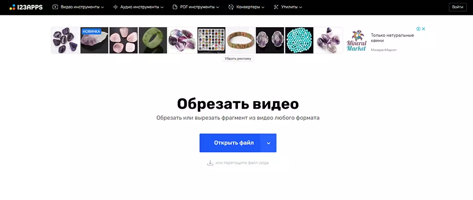 Кликните«Открыть файл» или перетащите материал в окно браузера.