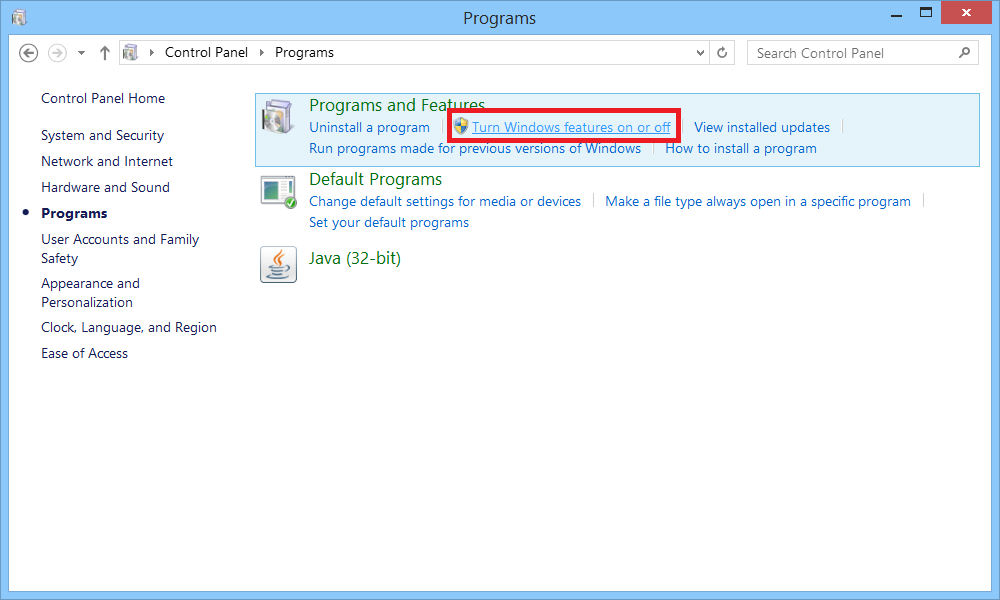 - В окне с левой стороны щелкните значок Включение и отключение функций Windows связь.