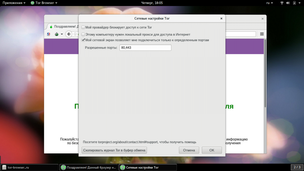 Обратите внимание, что настройки вступят в силу только после перезапуска Tor
