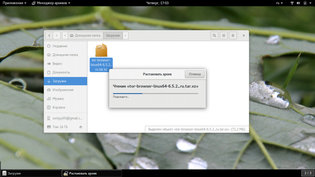 После того как загрузка будет завершена, перейдите в папку с архивом и распакуйте его: