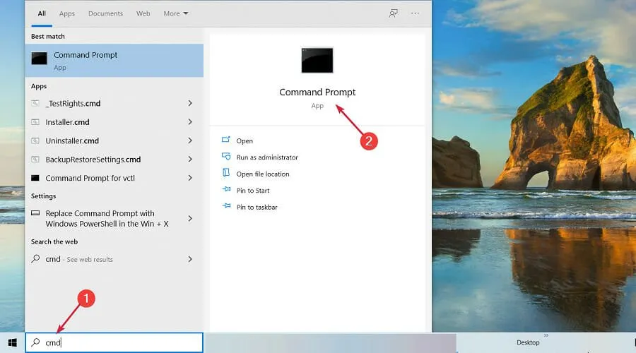 - Затем введите CMD в строке поиска и выберите запуск с правами администратора.