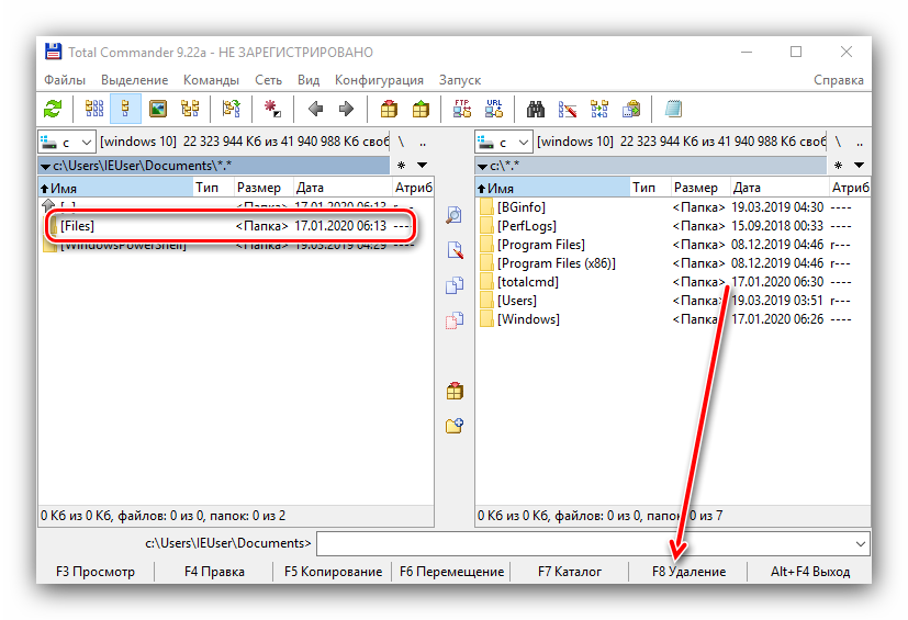 Самым популярным файловым менеджером, который установлен практически на каждом ПК, является Total Commander. Чтобы удалить файл через этот менеджер, стоит выполнить такие действия: