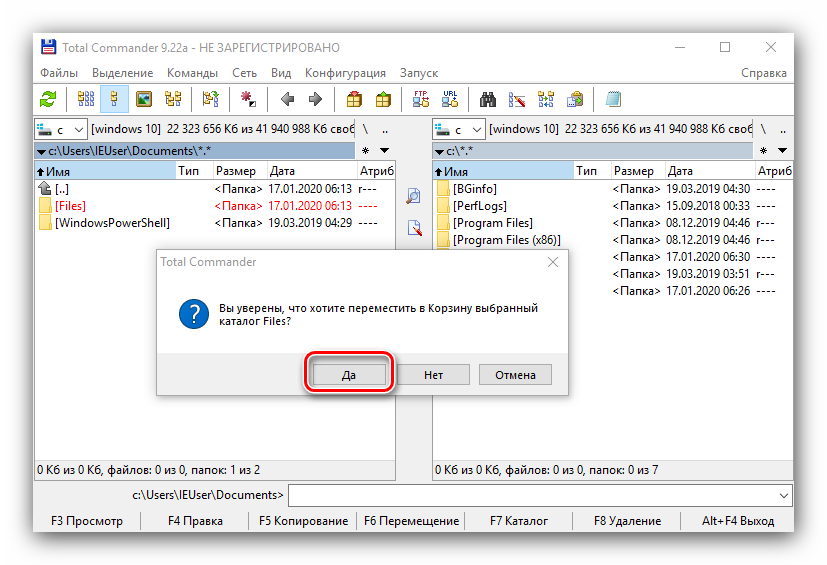 «Проводник» Windows 10 иногда не в силах стереть некоторые данные из-за собственных ограничений. Последние отсутствуют в сторонних программах для удаления файлов, что делает их эффективными в решении рассматриваемой проблемы. В качестве примера используем популярное приложение Total Commander.