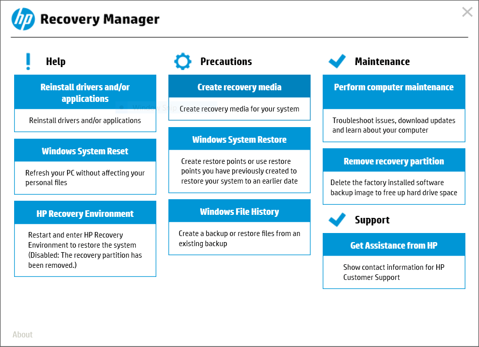 В менеджере программы восстановления выберите раздел Windows System Reset