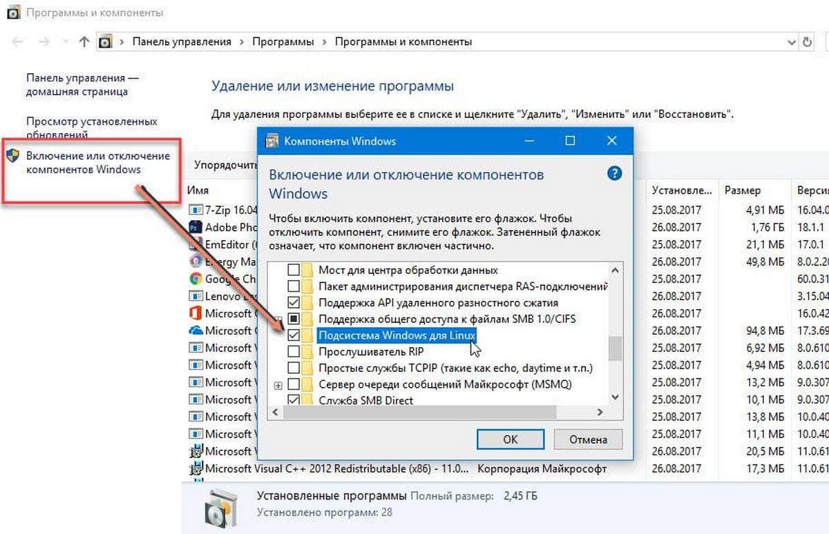 Далее перейдите в раздел «Включение/отключение компонентов».