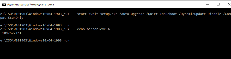- /Compat ScanOnly – выполнить только проверку совместимости, без выполнения обновления.