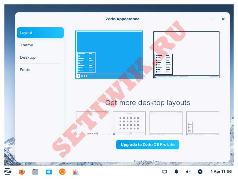 Одна из моих любимых функций это приложение Zorin appearance, которое позволяет изменять макет, темы, шрифты и общую привлекательность рабочего стола.