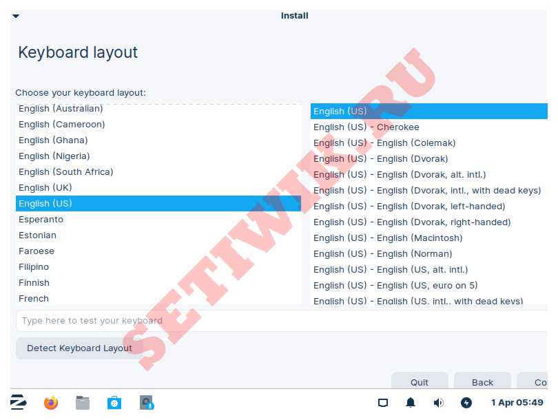 Затем установщик спросит вас какой язык клавиатуры вы предпочитаете. Просто выберите один.