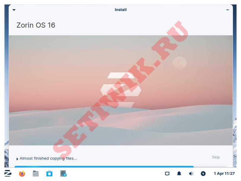 После этого Zorin начнет копировать файлы на ваш компьютер. Остается только ждать.