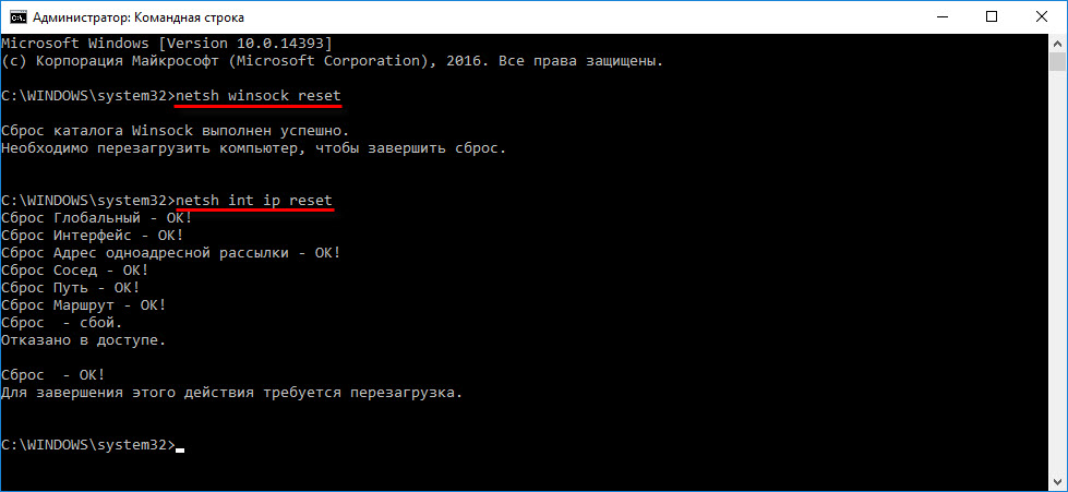 Очистка таблицы маршрутизации, сброс протокола TCP/IP