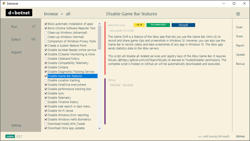 Debotnet — просто и утилитарно для отключения телеметрии Windows