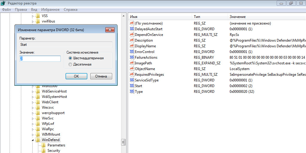- Перейти во вкладку «SERVICE» и «WinDefend»