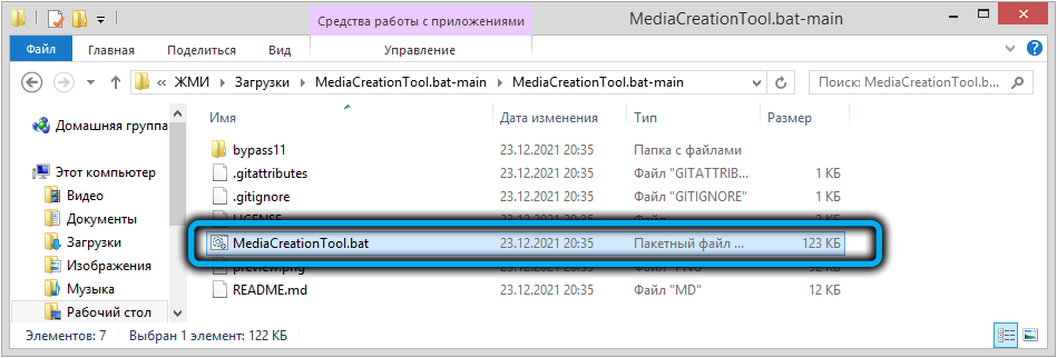 Использование bat-файла Universal MediaCreationTool