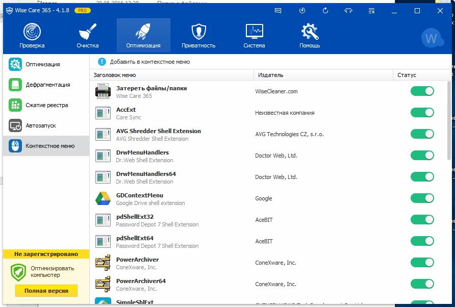 Вторая по счету группа утилит Wise Care 365 – это оптимизация системы. Здесь собраны все инструменты, которые помогут оптимизировать работу.