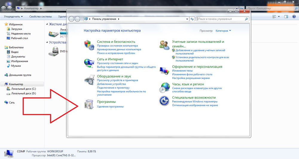 - Откройте «Программы и компоненты». Или «Удаление программ».