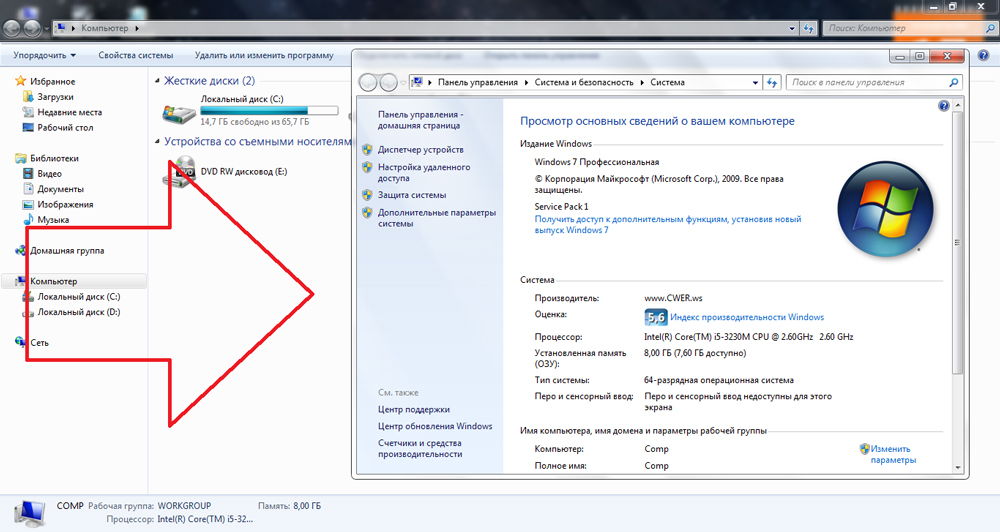 - В появившемся окне выбираем тот локальный диск, на котором установлена операционная система (на иконке будет значок Windows рядом с диском, обычно это Диск C). Щелкаем правой кнопкой мыши на нем и выбираем пункт “Свойства”.