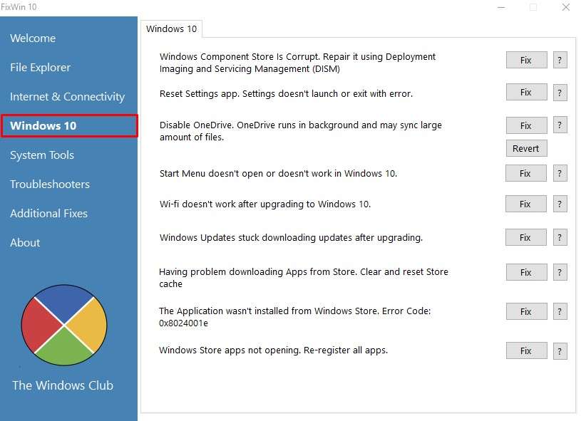 Некоторые программы для исправления ошибок в Windows 10 просто не работают, так как несовместимы с новой операционной системой. Софт FixWin 10 предназначен именно для починки Windows 10.