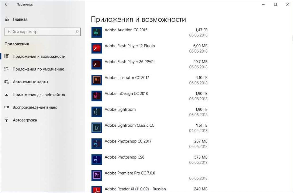 “Параметры Windows” — еще одна область, в которой можно произвести удаление приложений