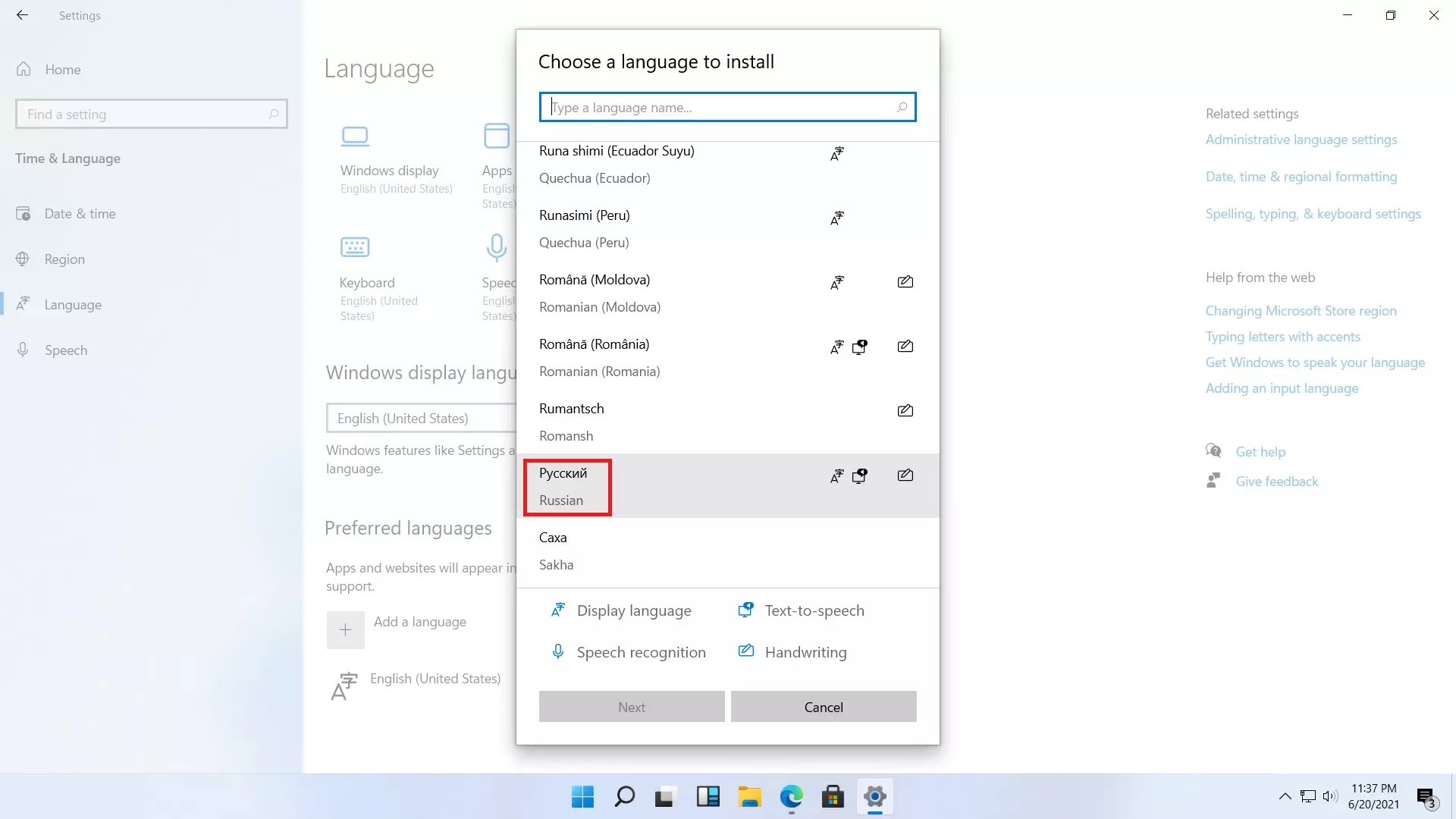 Многие параметры остались на английском языке, но основные все на русском. (Рис.17, 18). Конечно, когда выйдет полная версия Windows 11, все будет на русском.