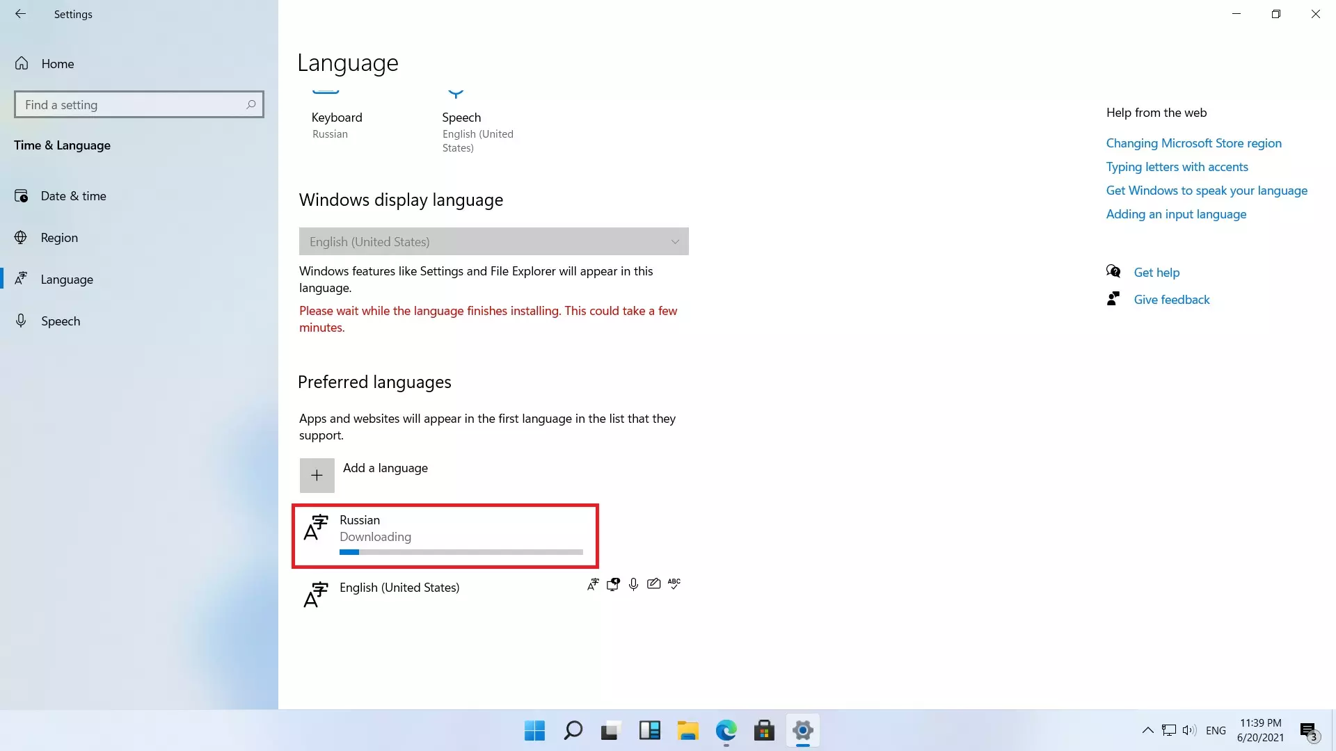 Ждем немного когда скачается и установится наш язык (Рис.14)