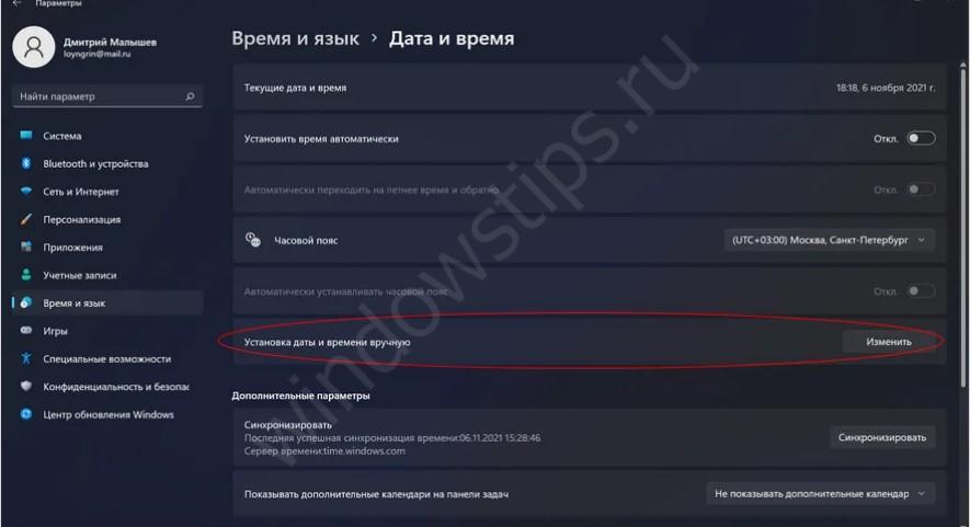 - Проверить дату и время компьютера. Не стоит забывать о настройке часового пояса. Ошибка в дате приводит к сбоям при соединении с серверами Майкрософт.