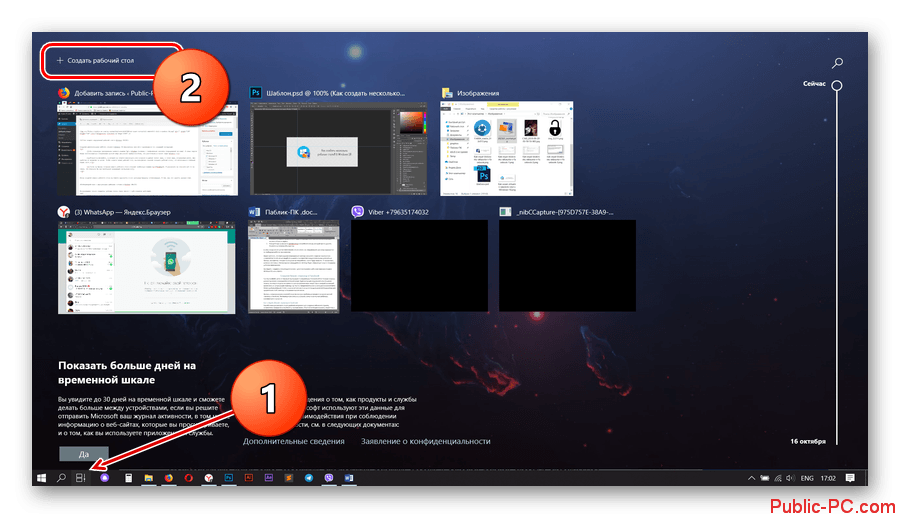 Создание дополнительных рабочих столов в Windows 10 максимально простое и производится по следующей инструкции: