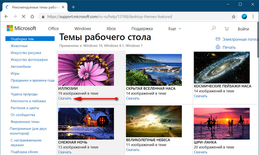 Темы от Microsoft в разделе персонализации в обычных редакциях Win10 устанавливаются из Microsoft Store. Поскольку в LTSC магазина нет, темы нужно скачивать с сайта Microsoft и устанавливать путём запуска скачанного файла «.themepack».
