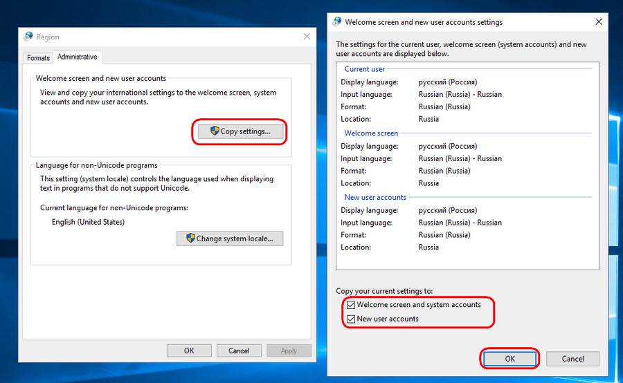 Жмём «Copy settings», выставляем внизу две галочки, кликаем «Ок».