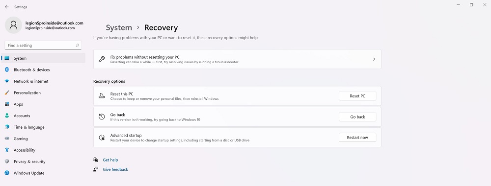 Также есть возможность восстановить ваш ПК до исходного состояния. Так вы сохраните свои данные и сможете исправить ошибки в работе Windows 11 Insider Preview.