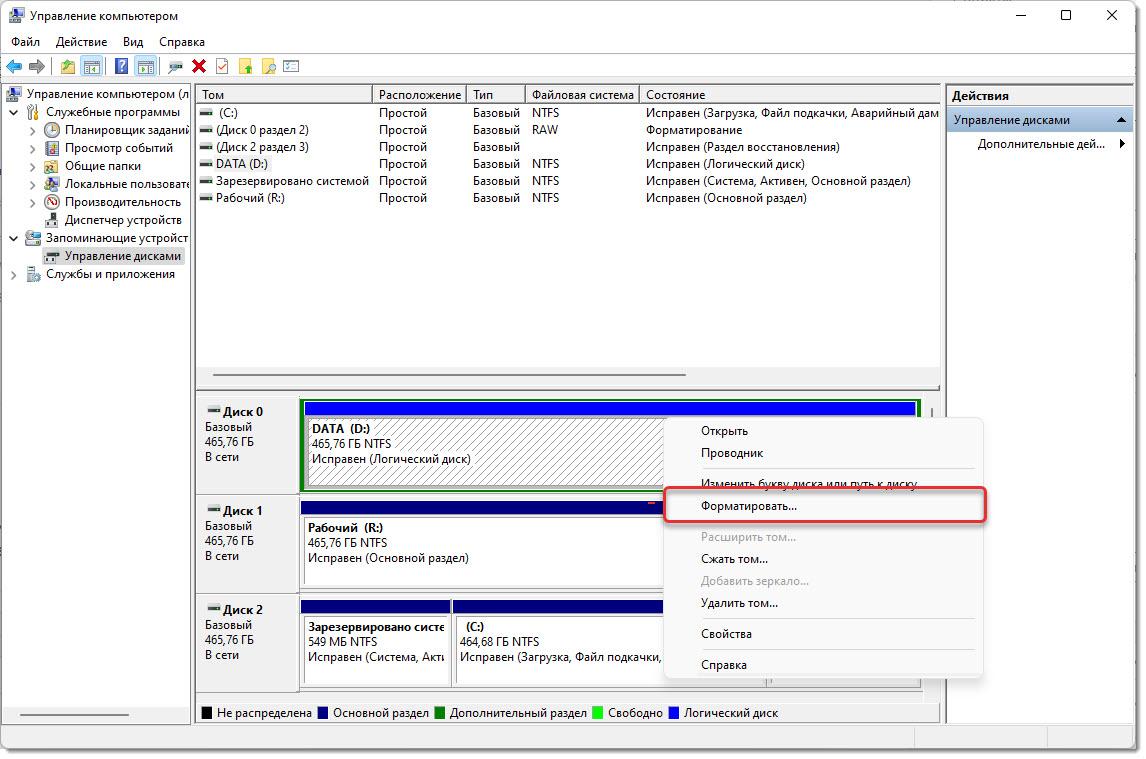 Если с этим есть проблемы (например, из-за системных файлов на диске), то попробуйте использовать специальные программы для управления дисками, такие как MiniTool Partition Wizard или EaseUS Partition Master.